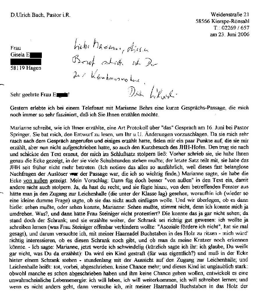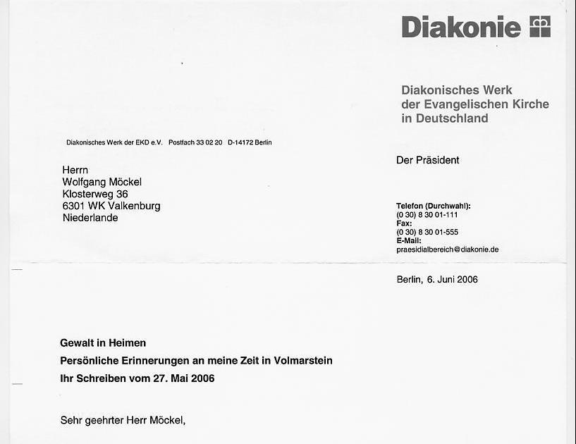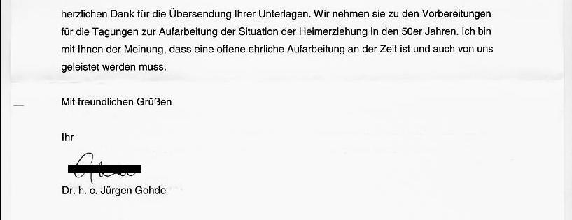 Ich leiste meinen Beitrag zur Aufarbeitung nur noch gegenüber Diakoniepräsident Gohde, da ich dort das Gefühl habe, daß er nach ersten
