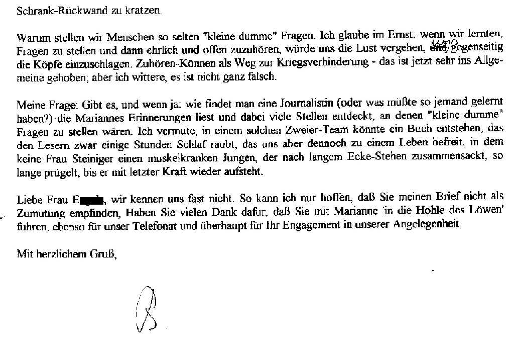 Gunst erkaufen können. Dieses Geld hat uns als Kinder ja gefehlt. ... Selbst wenn sich kein Verlag für ein Buch findet, wäre es überlegenswert, eine Homepage zu errichten, auf der über die „Hölle von