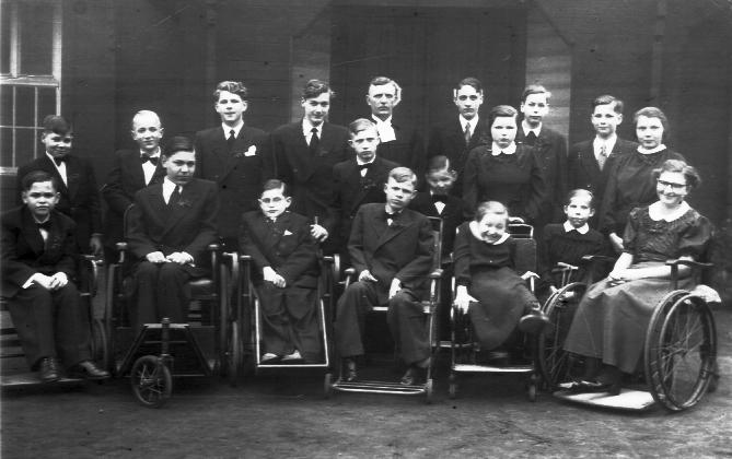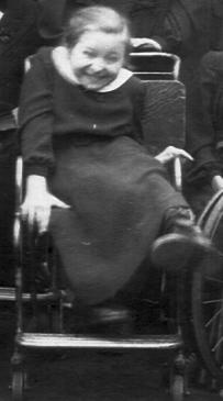 Ferien zu Hause trug ich sie nie, weil ich merkte, daß das Bein in der Schiene nicht mitwuchs und auch immer dünner wurde. Wie ich mit der Schiene im Rollstuhl gesessen habe, kann man auf dem Konfirmationsbild,