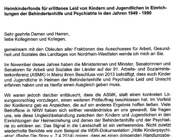 nehmen, die ehemalige Heimkinder, die Unrecht und Leid in Jugendhilfeeinrichtungen erleben mussten, als Grundlage für die Anerkennung und Hilfe der Heimkinder aus Behinderteneinrichtungen und Psychiatrien nehmen.
